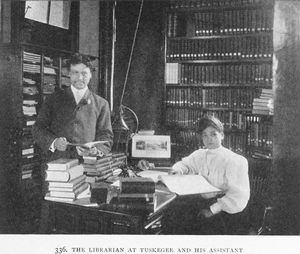 The caption reads: "The Librarian at Tuskegee and his assistant, 1910".
